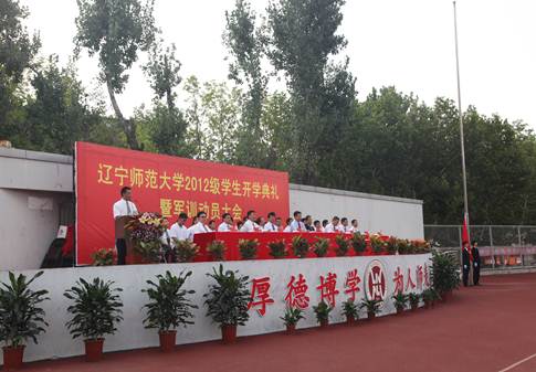 2012年9月2日上午,我校2012级新生开学典礼在北院操场举行。校领导曲庆彪、韩增林、曲维、刘向军、李伟、李庆伟、李雪铭、苏健、李红出席典礼,参加典礼的还有学校机关各部处负责人及各学院党总支副书记、团委书记、辅导员老师。