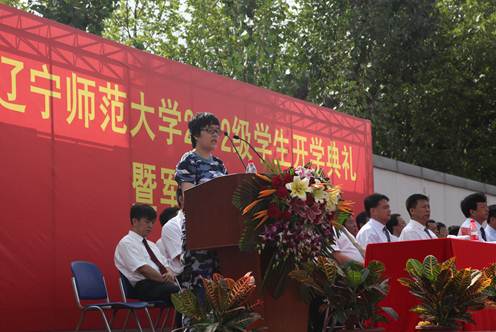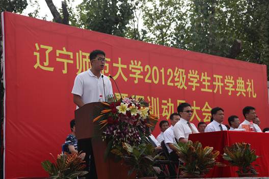 新生代表、教育学院2012级新生张世程同学,在校生代表、政治与行政学院2009级张博闻同学分别作了代表发言。