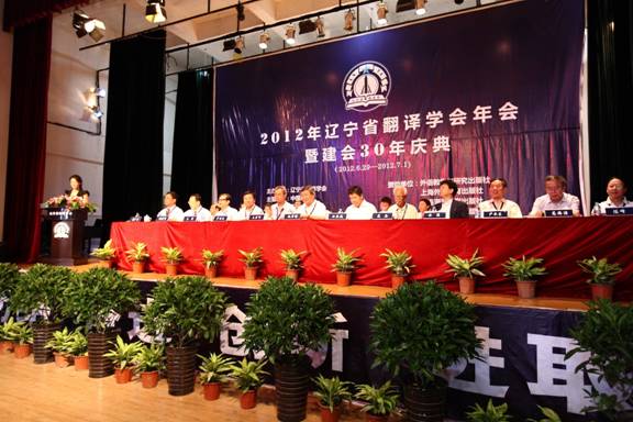 6月30日由外语学院、国际商学院承办的“2012辽宁省翻译学会年会暨建会30年庆典”在我校西山校区影视艺术学院演出厅隆重召开。来自省内高等院校及企事业单位代表119人出席大会。中国译协常务副会长赵常谦、副会长尹成东出席大会祝贺。大会特邀四川外国语学院王寅教授、南开大学王宏印教授、清华大学罗选民教授,大连海事大学范凤祥教授、大连外国语学院杨俊峰教授与会进行了学术交流。校党委书记曲庆彪教授和副校长曲维教授到会并分别致开幕词和闭幕词。