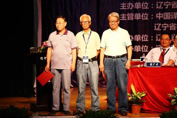 翻译学会三位元老:名誉会长范岳(中)、原副会长宋光庆(右)、原秘书长宋韵声(左)