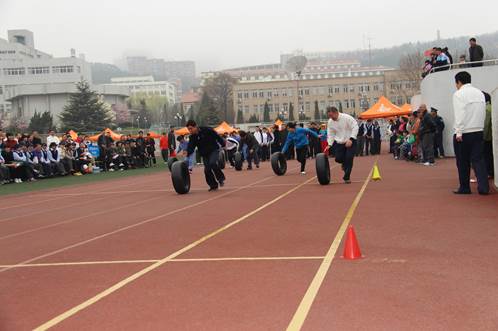 为践行党的十八大提出的“广泛开展全民健身运动,促进群众体育和竞技体育全面发展”的精神,积极推进后勤集团文化建设,经后勤集团工会的积极筹备,4月28日下午,辽宁师范大学后勤服务产业集团首届趣味运动会在北院体育场隆重召开。学校副校长刘向军、大连市高校协作办公室主任吴颖、校务办公室主任朱成利、校工会主席张学军、校妇女工作委员会主任杨华、校资产与后勤管理处处长朱再明、大学生公寓城管理中心主任于艳娟、组织部副部长卜红双、后勤集团全体领导班子以及300余名干部职工参加了开幕式。开幕式由后勤集团工会主席朱艳美主持,后勤集团党总支书记曹锡顶致开幕词,校工会主席张学军、大连市高校协作办公室主任吴颖分别致辞祝贺,刘向军副校长宣布“辽宁师范大学后勤服务产业集团首届趣味运动会开幕”。