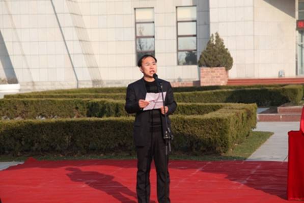 揭牌仪式在雄壮的国歌声中拉开了帷幕,我校组织部部长丛茂国同志代表党委致辞。