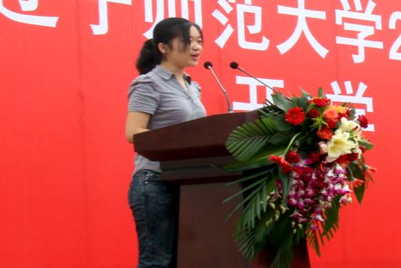 校研究生会主席、教育学院2010级硕士研究生董亚君同学代表在校生讲话。