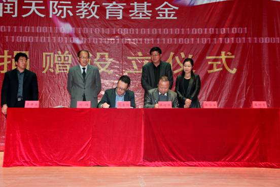 由大连鼎润天际文化传媒有限公司向辽宁师范大学教育基金会(以下简称基金会)捐赠设立“鼎润天际教育基金”签字仪式于11月11日下午3点在我校影视艺术学院大剧场隆重举行。我校教育基金会副理事长、校长韩增林教授,基金会理事、校党委副书记刘群,大连鼎润天际文化传媒有限公司董事长范吉祥,校工会主席张学军,学生处处长于开文等相关部门负责人,以及我校影视艺术学院领导及部分教师和学生代表等共400余人参加了捐赠设立仪式。