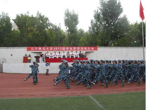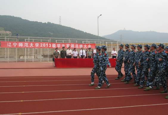 9月18日上午,辽宁师范大学2013级学生军训总结大会分别在黄河路校区北院运动场和西山校区运动场隆重举行。校党委副书记刘群、中国人民解放军辽宁陆军预备役高射炮兵第二师第二团团长王冀宁、机关各部门领导及各学院党总支副书记出席了军训总结大会。大会由校武装部部长全双厚主持。
