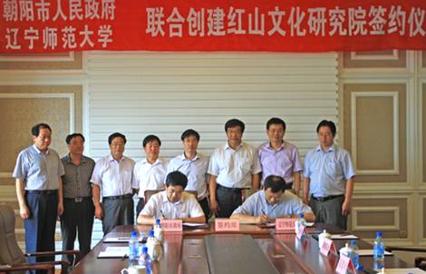 7月4日,辽宁师范大学、朝阳市政府联合创建牛河梁红山文化研究院签约仪式在朝阳市华府万国酒店举行。我校副校长李庆伟教授、科研处处长岳崇兴教授、历史文化旅游学院田广林教授,朝阳市市委常委、常务副市长屈连春,副市长张东群出席。创建牛河梁红山文化研究院旨在深入开展红山文化研究,为我校创建“2011计划”协同创新中心提供帮助;同时,配合牛河梁红山文化遗址群申报世界文化遗产,传承和弘扬历史悠久的中华文明,促进地方经济社会发展和文化繁荣。