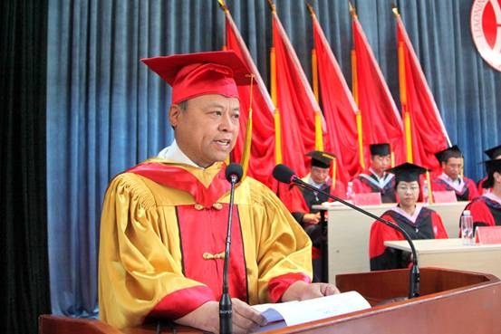 韩增林校长代表全校教职员工向2015届5581名学成毕业的本科生、硕士生、博士生表示祝贺并送上美好祝愿。韩校长希望同学们能慎思明辨,养浩然正气;知行合一,存鸿鹄之志;懂得敬畏,怀感恩之心。