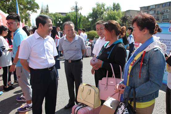 迎新当日,学校党政领导及相关部处负责人亲赴迎新现场,了解迎新工作进程,并看望新生、家长及工作人员。在新生报到接待处和学生宿舍,校领导关切地询问新生报到情况、学生家庭情况等,并与学生、家长亲切交谈,他们勉励新生尽快完成角色转变,能够更加独立自主地学会安排大学生活,努力学习,不负青春年华。