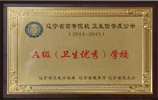 12月1日,辽宁省高等院校卫生监督量化分级管理工作总结大会在东北大学汉卿会堂报告厅召开。我校获得辽宁省2014—2015年度高等院校卫生监督量化分级管理A级(卫生优秀)单位称号,辽宁省卫生计生委、辽宁省教育厅、辽宁省爱卫会为学校颁发了牌匾。