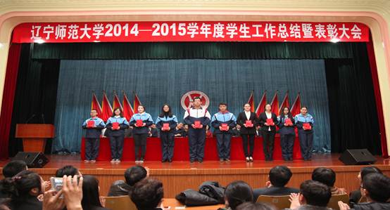 辽宁师范大学2014-2015学年度学生工作总结暨表彰大会于11月24日下午在校礼堂隆重举行。宫福清书记、韩增林校长、刘向军副校长、李伟副校长、李雪铭副校长、宋述龙总会计师、机关各部处及各学院的领导老师和学生代表出席了大会,大会由李伟副校长主持。