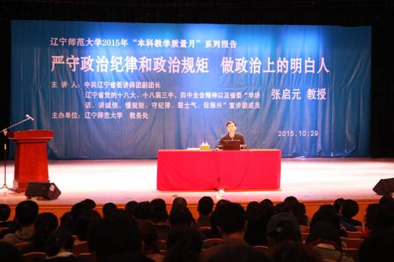 下午,张启元教授在音乐厅做了《严守政治纪律和政治规矩,做政治上的明白人》的专题报告,我校部分青年教师、辅导员和师范生代表及学生处、教务处科级以上干部300余人聆听了报告,副校长刘向军出席报告会。报告会由教务处处长苑晓杰主持。