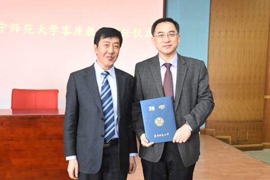 2016年4月27日上午,上海外国语大学教授、博士生导师,教育部“长江学者”特聘教授乔国强先生受聘辽宁师范大学客座教授仪式暨“叙事中的空间、时间及其他”讲学活动在我校国际会议厅隆重举行。上海外国语大学文学研究院专职研究员姜玉琴老师,辽宁师范大学党委副书记李培山,科研处、外国语学院相关领导和师生代表及校内外慕名前来的学子们共同参加此次活动,现场座无虚席。外国语学院副院长冷慧主持聘任仪式。