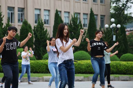 7月1日上午9点30分许,主楼前广场音乐骤然响起,近200名师生伴随着一段段充满青春活力的旋律尽情歌舞,以“快闪”的形式为学校65周年华诞献礼。