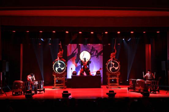 晚6时30分,演出准时开始,我校学生以小合唱的形式表演了池田大作先生作词的经典歌曲《母亲》。“舞太鼓”飞鸟组合表演了《波动》《上升气流》《风暴》等10个曲目。整个演出由鼓声控制,伴以笛声、琴声,其中日本传统的鬼怪与天狗之争,看似争吵,却演绎了和平相处的主题。此次交流演出为我校师生提供了一个近距离感受日本传统文化的平台,是一场“以音乐联络各国人民的心灵,借此为世界和平尽力”的文化交流。