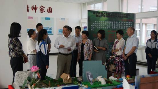 刘向军副校长饶有兴致地观看每一件作品,向指导教师详细了解标本的制作过程,认真聆听学生对作品的讲解,并就作品的构思、工艺、作品介绍等细节和学生进行了讨论。他对作品中所展现出的热爱大自然、保护生态环境的强烈责任感和对美好事物的向往表示赞赏,并勉励学生不断提高动手能力和综合素质,开阔视野,增长才干,培养合作意识,为将来立足社会打下坚实的基础。