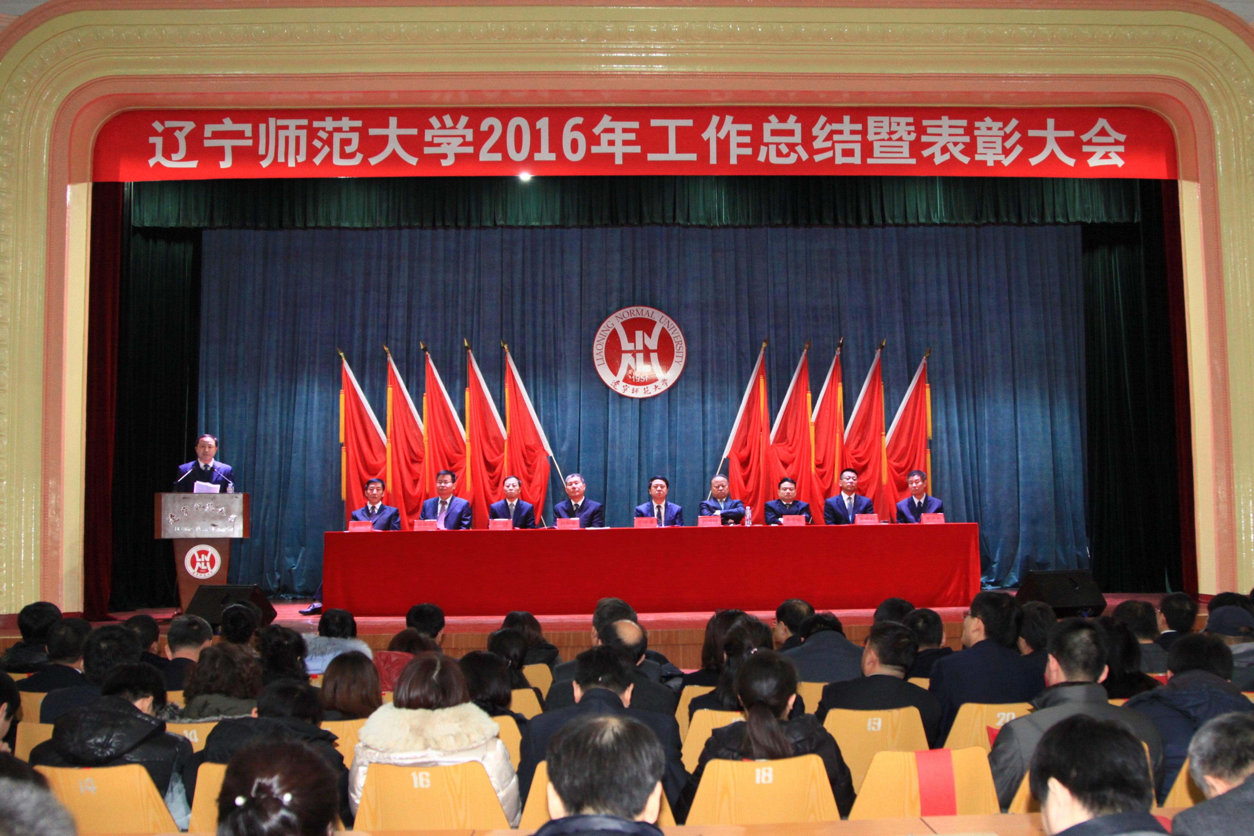 1月11日下午,辽宁师范大学2016年工作总结暨表彰大会在校礼堂隆重召开。校党委书记宫福清、校长韩增林、副校长刘向军、李雪铭、纪委书记苏健、副校长朱成利、岳崇兴、总会计师宋述龙,获奖集体代表、先进个人、各单位、各部门负责同志及教职工代表共700余人参加大会。大会由党委副书记李培山主持。