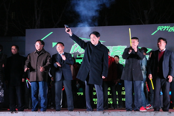 12月8日17:30,纪念“一二·九”运动八十一周年荧光夜跑活动暨2017“三走四早”(“三走”即走下网络,走出宿舍、走向操场,“四早”即“早起、早操、早读、早餐”)青年健康行动启动仪式在黄河路校区和西山湖校区同时举行。校党委书记宫福清、校长韩增林、副校长朱成利以及机关各部处领导,二级学院党总支书记、党总支副书记、团委书记、团委副书记、辅导员老师参与本次活动。活动由政治与行政学院2014级本科生季承前、生命科学学院2015级研究生张万主持。