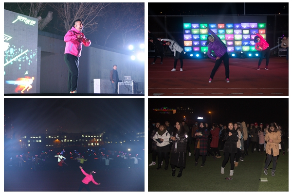 生命科学学院车泉洋老师和赵丹莉同学带领大家开展热身运动。活力四射的乐曲,动感十足的舞步,驱走了冬日的严寒。热身运动结束后,党委书记宫福清和校长韩增林鸣响发令枪,“闪耀青春,点亮辽师”纪念“一二·九”运动荧光夜跑正式开始。