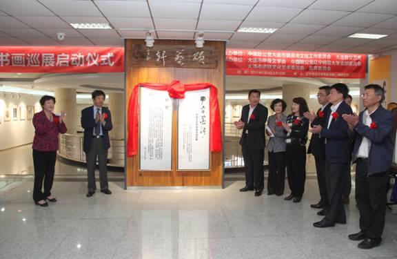 致公党大连市委员会王大鸣主委、辽宁师范大学党委统战部杨华部长分别致辞,对本次活动给予高度肯定。他们在致辞中指出,优秀传统文化进校园是培育和践行社会主义核心价值观、立德树人的重要基础。加强传统文化传承,有利于青年学生更加全面准确地认识中华民族的历史传统、文化积淀、基本国情,认清中国特色社会主义的历史必然,坚定走中国特色社会主义道路,坚定实现中华民族伟大复兴的中国梦,《甲骨墨韵——传统文化进校园书画巡展》有着重要意义。市政协曲维副主席和市社科联王年宏副主席为本次巡展揭牌,全体人员一起对巡展作品进行参观交流。