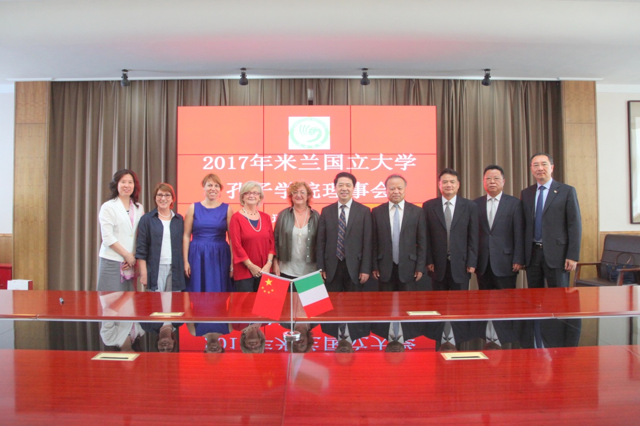 6月2日,米兰国立大学孔子学院2017年度理事会在我校主楼301会议室召开。米兰国立大学副校长莫尼卡·迪卢卡、孔子学院意方院长兰珊德、孔子学院理事会理事柯拉拉、孔子学院执行院长玛万琳、孔子学院中方院长金志刚,校党委书记宫福清、校长韩增林、副校长李雪铭、国际交流处处长关春影、国际教育学院院长关伟出席理事会。副校长李雪铭主持会议。