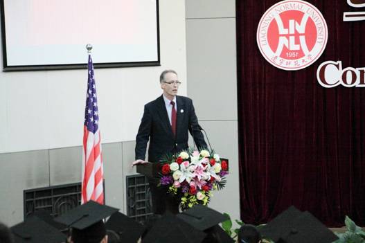 密苏里州立大学商学院副院长David Meinert对所有毕业生表达了最美好的祝愿,鼓励大家把梦想变成现实,并分享了成功的秘诀。