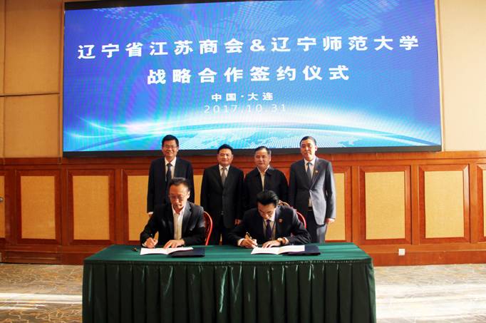 10月31日下午,辽宁省江苏商会与辽宁师范大学战略合作签约仪式在棒棰岛宾馆举行。辽宁省江苏商会会长郭长龙等商会领导,我校校长李雪铭、副校长岳崇兴及相关部门负责人出席签约仪式,仪式由辽宁省江苏商会秘书长谈德良主持。