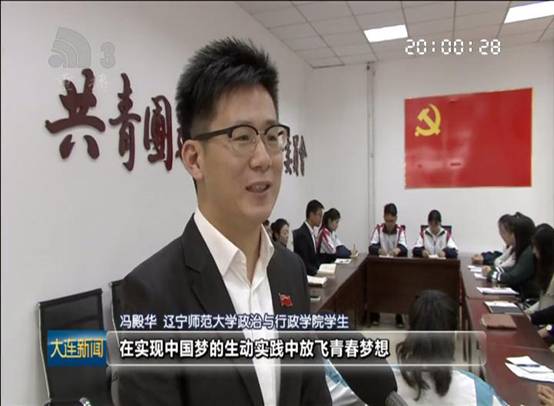 政治与行政学院学生冯殿华接受了大连广播电视台的采访,代表青年学子发出心声:“青年兴则国家兴,青年强则国家强。我们要坚定理想信念,志存高远,脚踏实地,勇做时代的弄潮儿,在实现中国梦的生动实践中放飞青春梦想,在为人民利益的不懈奋斗中书写人生华章。”