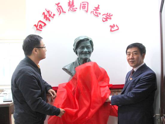 校党委副书记李培山同志与张海涛同志为张贞慧塑像揭幕