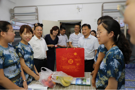 月到中秋分外明,每逢佳节倍思亲。9月13日,中秋佳节来临之际,校长李雪铭、副校长丛茂国、相关部门负责人以及少数民族辅导员为2019级新生送去关心和祝愿。李雪铭校长一行带着慰问品走进学生宿舍,详细了解了2019级新生来自哪个省份,了解同学们入学后的饮食起居、学习生活及军训训练等情况。