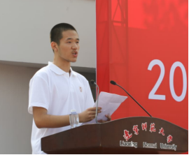 数学学院2019级本科生孔维汉代表全体本科生发言。他表示圆梦辽师依然不能有丝毫停歇,依然要博学笃志、奋发图强,用自信和勤奋来武装自己;远望星辰大海,目向国家未来,用智慧、勇气和不服输的心向文化科技的每一座山峰攀登;秉承“厚德博学、为人师表”的校训,刻苦学习,历练本领,立志高远,德能并进,不辜负父母的期望,不忘怀老师的教诲。