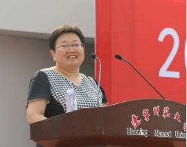 全国优秀教师、辽宁省本科教学名师、政府管理学院薛伟莲教授代表全体教师发言,她对全体新生提出四点希望:一是“有温度”,要心怀感恩,善良热情,要有阳光向上的心态;二是“有气度”,要待人以宽,担当责任,不惧困难;三是“有态度”,要有与困难“血战到底”的韧劲,要树立“吹尽黄沙始到金”的坚韧,要有“直挂云帆济沧海”的勇气;四是“有深度”,博学笃志、慎思明辨,成长为有知识广度、思想深度的有为青年。