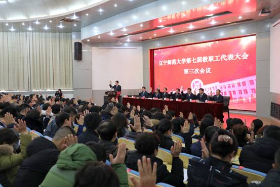 12月25日下午,辽宁师范大学第七届教职工代表大会第三次会议在学术报告厅隆重召开。校党委书记宫福清、校长李雪铭,校领导李培山、刘向军、朱成利、岳崇兴、苑晓杰、丛茂国出席大会,教代会代表185人参加大会。大会由党委副书记李培山主持。