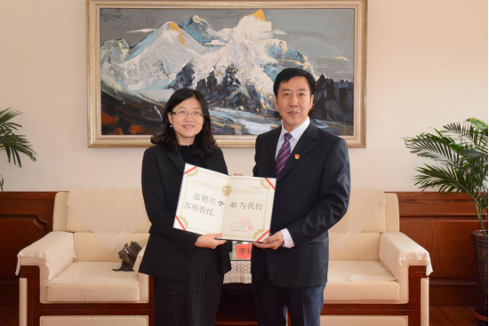 党委副书记李培山对于黎校友重返母校表示热烈欢迎,对她取得的突出成绩表示赞赏,并向其介绍了学校近年来在学科发展、人才培养、师资队伍建设、科研等方面取得的成绩,希望于黎校友能为母校的建设和发展贡献出自己的一份力量。李培山副书记表示,母校是校友发展的坚强后盾,校友的奋斗过程是大学精神和“一训三风”的体现,更是学校人文精神的一项重要资源。于黎校友表示,此次重返母校,格外亲切,对母校改革发展取得的成绩由衷高兴,也希望能够尽己之力为母校的建设发展添砖加瓦。随后李培山副书记为于黎颁发了客座教授聘书。