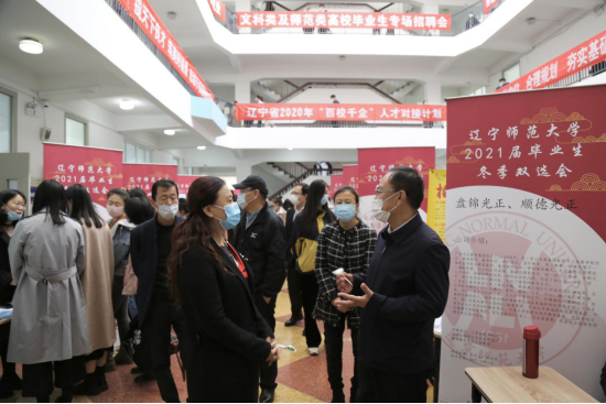 11月14日,辽宁省2020年“百校千企”人才对接计划文科类及师范类高校毕业生专场招聘会暨辽宁师范大学2021届毕业生冬季就业洽谈会在黄河路校区北院文科楼成功举办。辽宁省大学生就业创业中心主任蔡民、我校副校长丛茂国亲临现场指导工作。