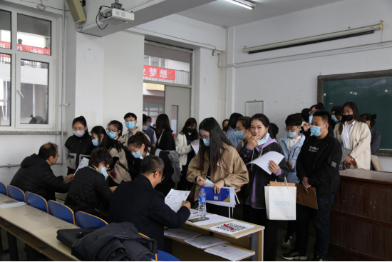 招聘会现场,丛茂国副校长向用人单位了解行业发展动态、岗位招聘需求以及用人单位对我校毕业生的反馈情况,提醒同学们注意防疫保护,鼓励大家树立正确的就业观,合理定位、积极就业。
