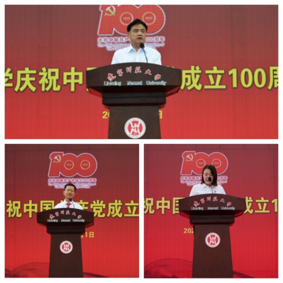 校党委书记李雪铭在升旗仪式上讲话。他首先代表学校党委向全体党员致以节日的问候和崇高的敬意!他强调,从1921到2021,这波澜壮阔的100年,一个政党的诞生与壮大,改写了一个东方大国的命运轨迹;从1921到2021,这彪炳千秋的100年,人民至上的思想光辉,照亮民族伟大复兴的崭新征程。中华民族从站起来、富起来到强起来的伟大飞跃告诉我们“没有共产党,就没有新中国”!他勉励全校师生要牢记习近平总书记的殷切嘱托,充分发挥我校教师教育鲜明特色,大力发扬红色传统、传承红色基因,赓续共产党人精神血脉,努力为国家培养“立大志、明大德、成大才、担大任”的时代新人。