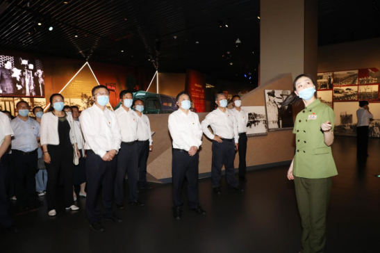 揭牌仪式后,校党委书记李雪铭、校长苑晓杰向抗美援朝烈士敬献花篮,并带领研学组全体同志重温了入党誓词。随后,研学组一行在讲解员的带领下在纪念馆内进行实地参观,回顾抗美援朝历史,接受革命传统教育。在序厅、战争厅、运动厅等六个展厅,研学组成员认真听取讲解,不时驻足凝视、深思、交流。每一幅图片、每一段文字、每一件文物的背后,都有着动人的故事,抗美援朝战争中无数先烈的英雄壮举和涌现出的伟大精神令大家无比动容、深深震撼。
