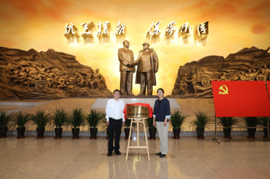 下午1:00,研学组一行来到丹东抗美援朝纪念馆,与抗美援朝纪念馆联合举行“辽宁师范大学爱国主义教育基地”揭牌仪式。丹东市人民政府副市长时燕同志与我校党委书记李雪铭同志共同为“辽宁师范大学爱国主义教育基地”揭牌。党委副书记、校长苑晓杰同志代表学校致辞。苑晓杰指出,在全国人民即将迎来建党百年的重要时刻,我校在这里举行“辽宁师范大学爱国主义教育基地”揭牌仪式可谓恰逢其时,意义深远。这是我校党史学习教育的一项重要举措,更是校馆携手、共同传承红色基因的创举。2021年是学校建校70周年,“基地”的成立可谓献给师大70华诞最好的生日礼物,必将成为学校拓展党史学习教育、推进爱国主义教育的又一坚强阵地。同时,苑晓杰向丹东市委市政府一直以来对学校的支持与帮助表示崇高的敬意。随后,丹东抗美援朝纪念馆党组书记、馆长刘静媛同志致欢迎辞。刘静媛馆长对母校领导、老师的到来表示热烈欢迎,并表示随着“基地”的设立,双方一定能够更加紧密合作,发挥各自所长,全面弘扬好抗美援朝精神,让红色基因代代相传,共同谱写爱国主义教育华章。揭牌仪式由校党委副书记李培山同志主持,丹东市文旅广电局副局长张平同志、抗美援朝纪念馆副馆长张校瑛同志、周国泗同志出席揭牌仪式。