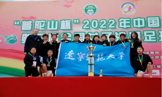 11月11日至13日,“普陀山杯”2022年中国足球协会第三届全国女子沙滩足球锦标赛在浙江省舟山市普陀区朱家尖南沙景区进行。经过连续三个比赛日的激烈角逐,我校获第三届全国女子沙滩足球锦标赛冠军!赵童获得最佳射手!