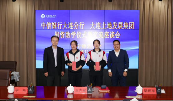 近日,我校召开中信银行大连分行、大连土地发展集团捐资助学仪式暨交流座谈会。中信银行大连分行党委书记、行长王志军,副行长平松,副行长李冰卓,我校优秀校友、大连土地发展集团董事长耿树丰,我校党委书记李雪铭,副校长丛茂国出席座谈会。中信银行大连分行、大连土地发展集团相关人员以及学校机关部处相关负责同志参加座谈交流。