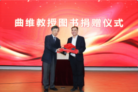 曲维教授深情表达了对学校的感恩之心,表示向学校捐赠图书就是为了更好地回报母校,为学校发展再尽绵薄之力,同时也表达了作为一名师者对莘莘学子傲楚学疆、纵旅书山学海的殷切希望。