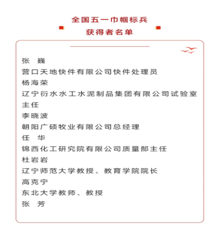 全国五一巾帼标兵评选表彰是中华全国总工会经中央批准予以保留的8个表彰项目之一,2005年首次表彰,每两年举办一次。在今年的评选表彰活动中,辽宁省14名个人荣获全国五一巾帼标兵称号。