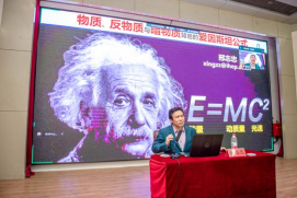 于辛老师为大家带来题为《愿将一生献宏谋---忆我的父亲于敏》的报告,讲述于敏院士“隐姓埋名28年”“愿将一生献宏谋”的故事,追忆“共和国勋章”获得者于敏院士的风采,弘扬科学家精神。邢志忠研究员作题为《物质、反物质与暗物质背后的爱因斯坦公式》的科普讲座,通过简单的物理学公式将质量、能量和光速联系起来,带领青少年走进神奇的物理世界。