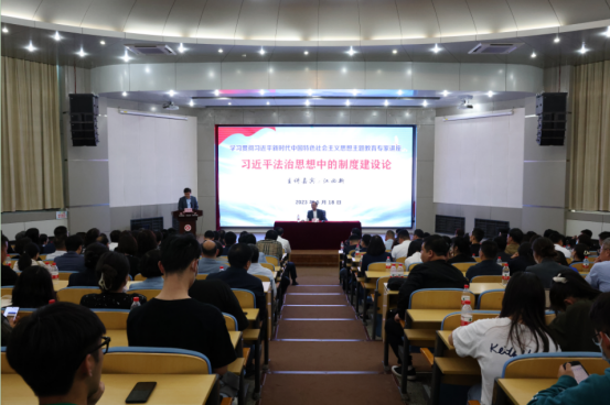为深入推进我校学习贯彻习近平新时代中国特色社会主义思想主题教育,牢牢把握“学思想、强党性、重实践、建新功”的总要求,深刻领悟习近平新时代中国特色社会主义思想的真理力量和实践伟力,5月18日下午,我校在黄河路校区学术报告厅举办学习贯彻习近平新时代中国特色社会主义思想主题教育专题报告会,邀请全国著名法学家、中国法学会副会长江必新教授到校作专题辅导。本次报告会由我校与大连市法学会、大连市律师协会共同主办。大连市法学会、大连市律师协会代表,我校在连校领导,机关各部处、各二级单位党政负责人及师生代表共计300余人参加会议。徐昭峰副校长主持报告会。