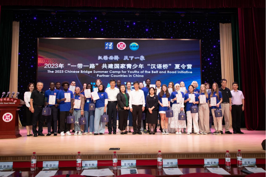 8月28日,由教育部中外语言交流合作中心主办、我校承办的2023年“一带一路”共建国家青少年“汉语桥”夏令营闭营仪式在校礼堂举行。辽宁省教育厅国际交流合作处处长韩冬梅,大连市人民政府外事办公室副主任刘舫,以及辽宁省教育厅国际交流处二级主任科员乔滟扬;辽宁师范大学校长姜凤春、副校长岳崇兴出席闭营仪式;此外,有来自俄罗斯、埃及、波黑、白俄罗斯、北马其顿、布隆迪、黑山、乍得等八个国家的青少年营员,以及我校国际交流处、国际教育学院和国际商学院领导班子成员、教职员工、志愿者和学生参加闭营仪式,闭营仪式由我校国际教育学院院长曹儒主持。