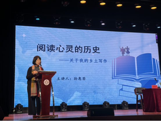 开幕仪式后,孙惠芬老师为读书季带来首场报告“阅读心灵的历史——关于我的乡土写作”。孙老师从《寻找张展》这部作品入手,从我的抒情时代、我的无尽关系、我的伤痛城市、我的还乡之旅四个方面,为与会读者介绍了她从抒情的废墟上站起,与土地、自然、家族的关系,向远方的孤独出走,通过写作向内求索,寻找精神的还乡的写作历程。孙老师的乡土写作就是阅读心灵的历史,为本次读书季“承神州泱泱文化,展时代熠熠华章”主题系列活动谱写了开篇,引起与会读者关于一场阅读、认知与思悟的共鸣,温暖了所有青春的生命。