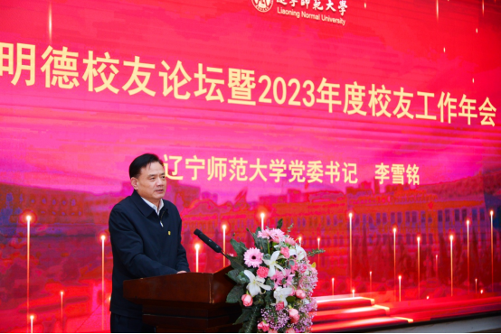 会上,校党委书记李雪铭作重要讲话。他代表母校辽宁师范大学,对前来参会的各位校友和来宾表示热烈的欢迎,对学校校友工作相关职能部门、各学院和地方校友会在凝聚人心、共促发展中作出的贡献表示高度认可。他指出,随着时代的发展和社会的不断进步,高等教育领域也面临着巨大的变革和挑战,校友逐渐成为助力社会和高校事业发展的一支不可或缺的重要力量,发挥着举足轻重的作用。校友是母校最亮丽的名片和最宝贵的财富,母校是校友最鲜明的标签。特别是最近几年,以地理科学学院、马克思主义学院、物理与电子技术学院等学院毕业生为代表的杰出校友们茁壮成长,为母校增添了无上的光荣。学校也一直在尽最大的努力,不断为“辽宁师范大学校友”这个品牌赋能,始终致力于推动母校与校友共融发展。他强调,2024年,学校将继续坚定不移做好校友工作,不断加强校友工作的改革和探索。一是要健全校友工作组织,更好地架起校友与母校、校友与校友之间联系的桥梁,打造合作的平台。二是要筑牢优质服务基础,让越来越多的校友可以借助校友会平台,实现更高质量的发展。三是要夯实有效联结保障,让校友与母校在情感共鸣中携手同行,助推校友和学校事业共同发展。他表示,毕业证是母校对学生的“终身质保凭证”。母校永远是大家的坚强后盾,会一直支持大家安心干事创业,为大家保驾护航。