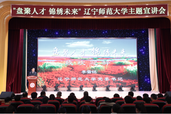 盘锦市“盘聚人才 锦绣未来”主题宣讲会在我校黄河路校区校礼堂举行。学校党委书记李雪铭进行致辞。盘锦市委常委、组织部部长张迎从盘锦振兴发展形势、盘锦创新创业环境和盘锦市人才引进政策等三个方面进行宣讲。盘锦市盘山县、双台子区、兴隆台区、大洼区教育局局长分别从本县区教育总体情况、用人需求及人才引进政策等方面进行推介。他们表示,盘锦市教育正处于高质量发展上升期,潜力巨大,未来可期。盘锦市各县区教育局针对不同领域的人才创设了各类优待扶持政策,欢迎广大辽师学子前来盘锦,施展才华,逐梦远航。