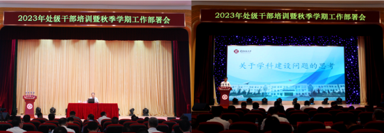 9月6日,学校召开2023年处级领导干部培训暨秋季学期工作部署会。本次培训班旨在深入学习贯彻习近平新时代中国特色社会主义思想和党的二十大精神,巩固主题教育成果,深刻把握高等教育发展的新定位、新部署、新要求、新任务,培养忠诚干净担当的高素质干部队伍,推动学校事业高质量发展。校党委书记李雪铭、校长姜凤春同志参加会议并作专题辅导,校领导、副处级以上领导干部200余人参加培训,本次培训由副校长丛茂国同志主持。