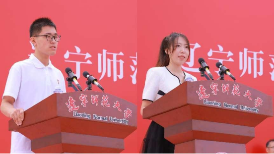 2023级文学院本科生王左赫代表全体新生发言。作为祖孙三代中的第六个辽师人。他表示,将谨记“厚德博学,为人师表”的校训,在未来四年的学习生活里,在阳光雨露中坚定前行,在砥砺奋进中上下求索,不辜负父母的期望,不忘怀老师的教诲,共同为辽师大再添荣光。心理学院博士研究生杨晴铄代表全体在校生发言。她鼓励2023级学弟学妹们,要自觉肩负起为校争光、为国争荣的重任,充分挖掘自己的潜能,脚踏实地地做事情,做身上洋溢着向上向善的正能量的辽师人,以坚定的信念、无畏的勇气,与师大共同谱写更加壮美的崭新篇章。